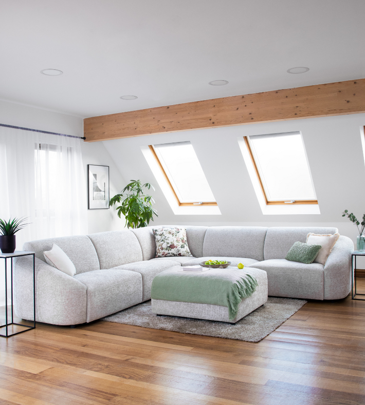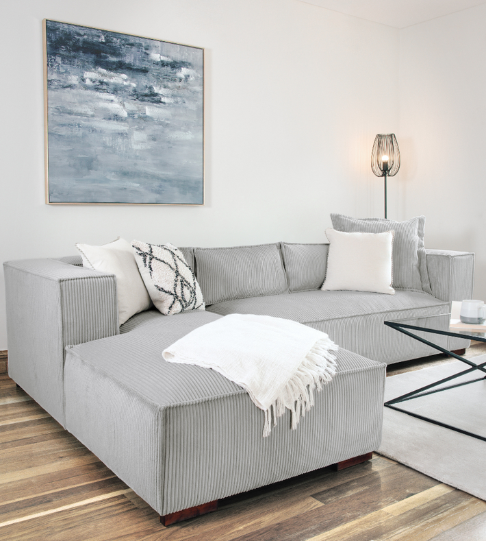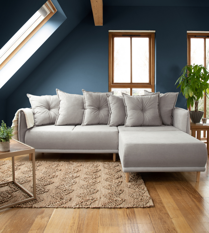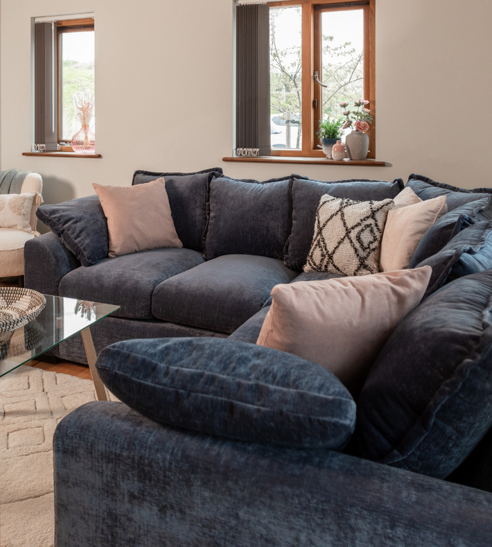 Due to their angular shape, corner sofas can easily be pushed back into the corner of the room. This creates more floor space in the centre of the room which gives the impression that the room is larger and more spacious. Simply choose which corner it will sit in and then choose either a left-handed or right-handed corner sofa.