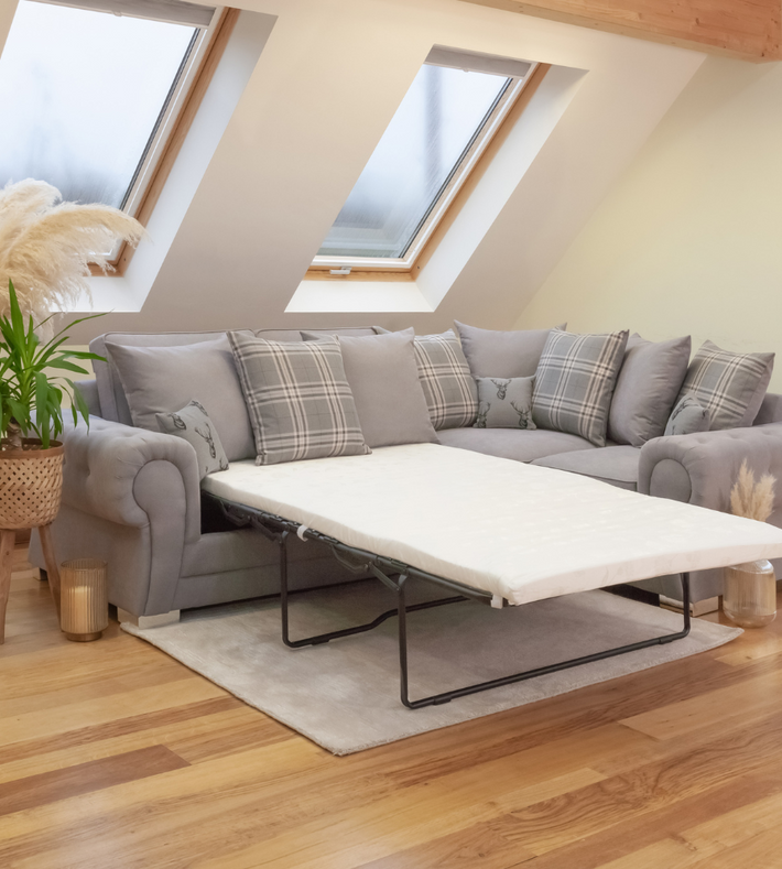 A corner sofa with pullout bed can quickly be transformed into a comfortable guest bed for those planned or impromptu overnight stays by friends and family. Better still is a corner sofa bed with storage so that all the spare bedding can be kept to hand but concealed when not in use.