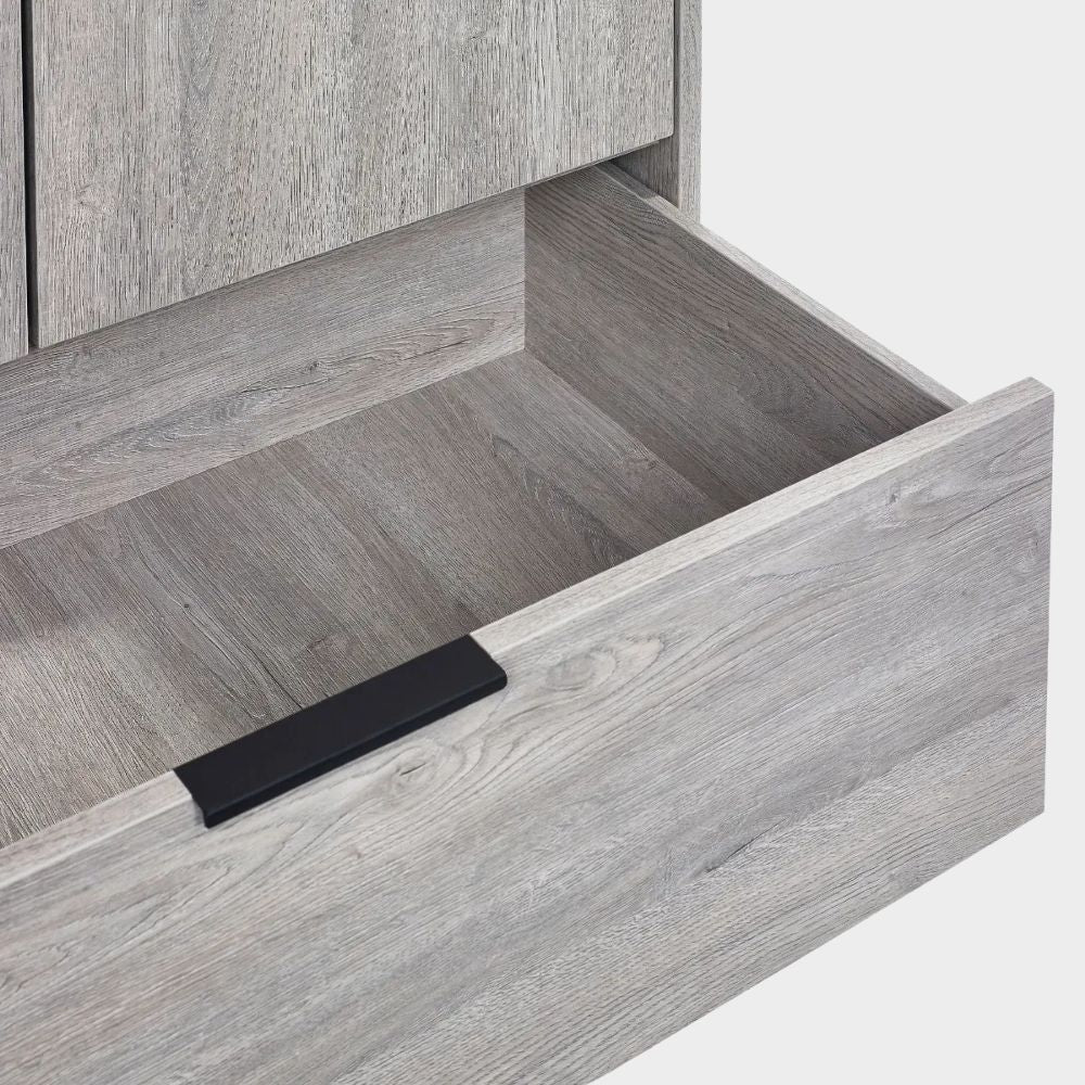Using revolutionary click furniture technology, the Bali collection combines high quality style with simple assembly. With a modern grey oak finish and contrasting black legs and handles, the Bali collection creates a classic industrial look in your bedroom – leaving you with a high-quality interior, with low maintenance upkeep. This collection includes: 1 drawer bedside, 2 drawer bedside, 4 drawer chest, 6 drawer wide chest, dressing table/desk, wardrobe, and bookcase bed.