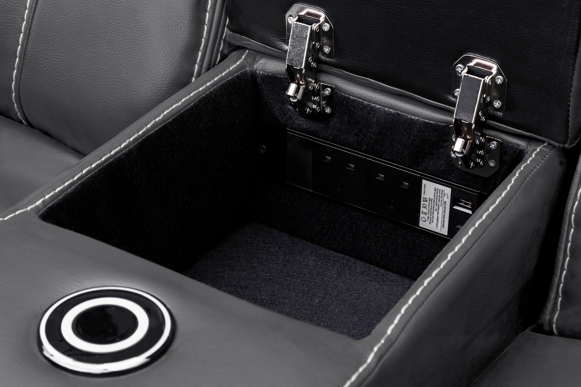 Enjoy the ultimate relaxation experience with built-in USB ports to keep your devices charged, handy cup holders for your favorite drinks, and spacious armrest and underseat storage for all your essentials. Crafted with high quality leather material, the Galaxy Tech Recliner sofa 2 seater in grey is not just stylish but incredibly comfortable.