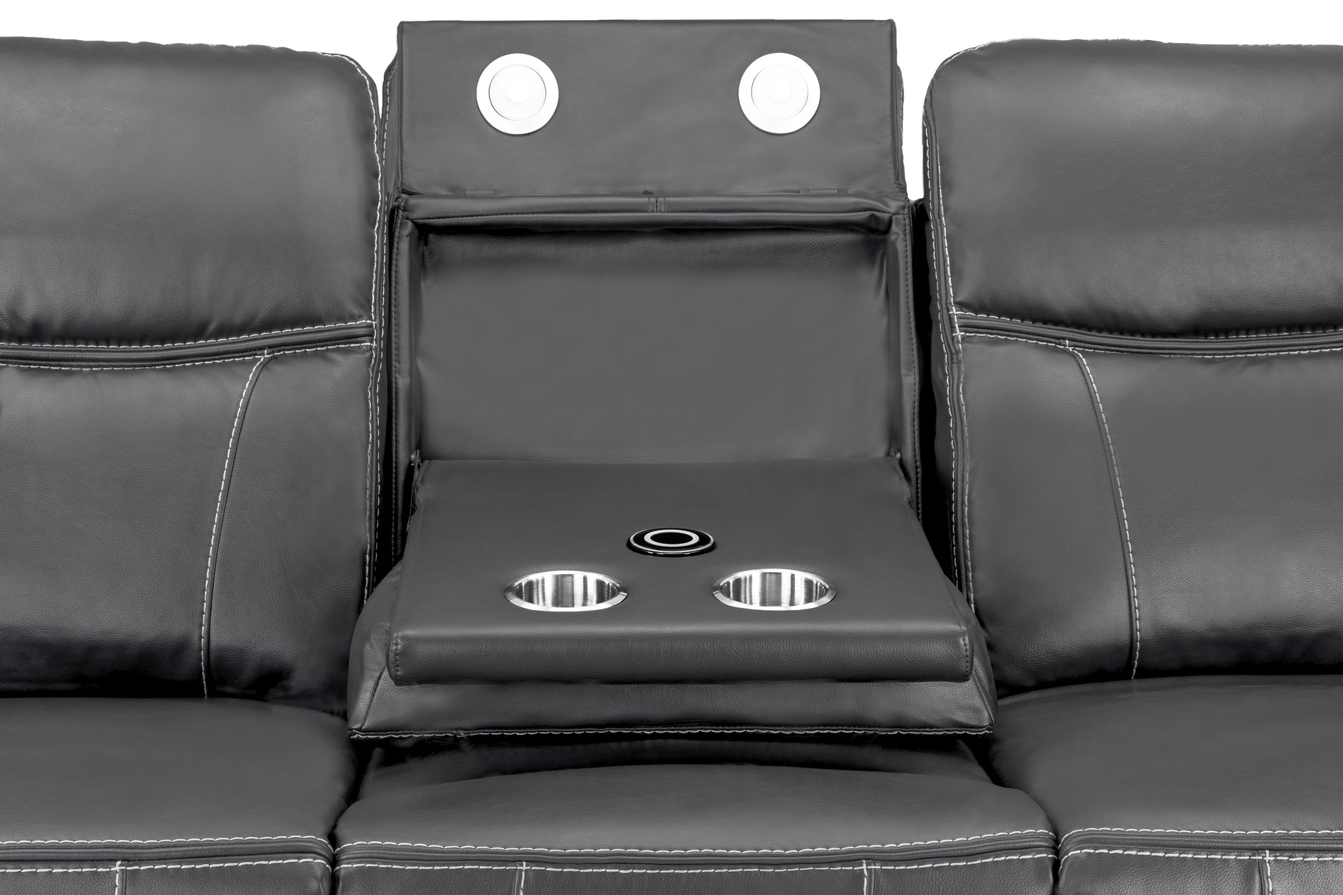 Enjoy the ultimate relaxation experience with built-in USB ports to keep your devices charged, handy cup holders for your favorite drinks, and spacious armrest and underseat storage for all your essentials. Crafted with high quality leather material, the Galaxy Tech Recliner sofa 3 seater in grey is not just stylish but incredibly comfortable.
