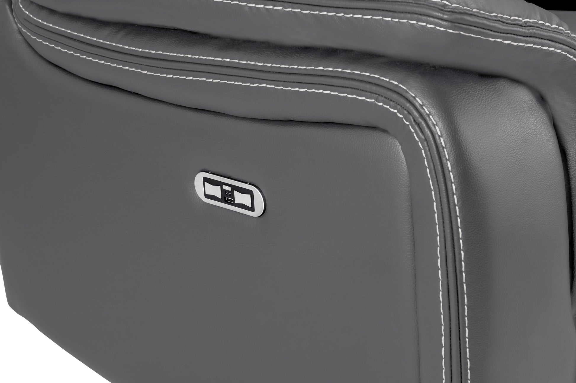 Enjoy the ultimate relaxation experience with built-in USB ports to keep your devices charged, handy cup holders for your favorite drinks, and spacious armrest and underseat storage for all your essentials. Crafted with high quality leather material, the Galaxy Tech Recliner armchair in grey is not just stylish but incredibly comfortable.