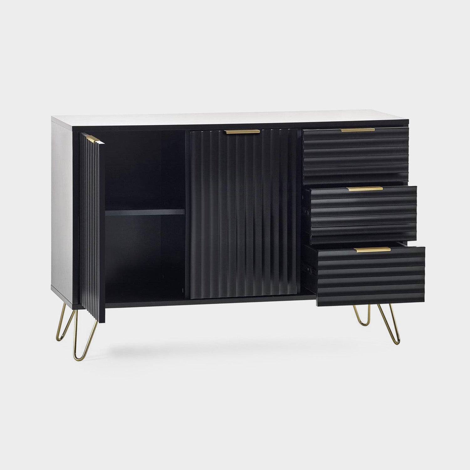 Sculpted fronts are a look that you do NOT want to miss out on. Mira is inspired by chic design – the brushed gold accents promote a high-end aesthetic that is on-trend but also perfect for various interior styles. How about pairing this collection with velvet sofas or bed to create the perfect feel for your home? This collection includes white finished bedroom pieces, and black finished living. Perfect for modern homes, this piece blends style with everyday comfort. Ideal for adding personality to your space while keeping things practical and on-trend.