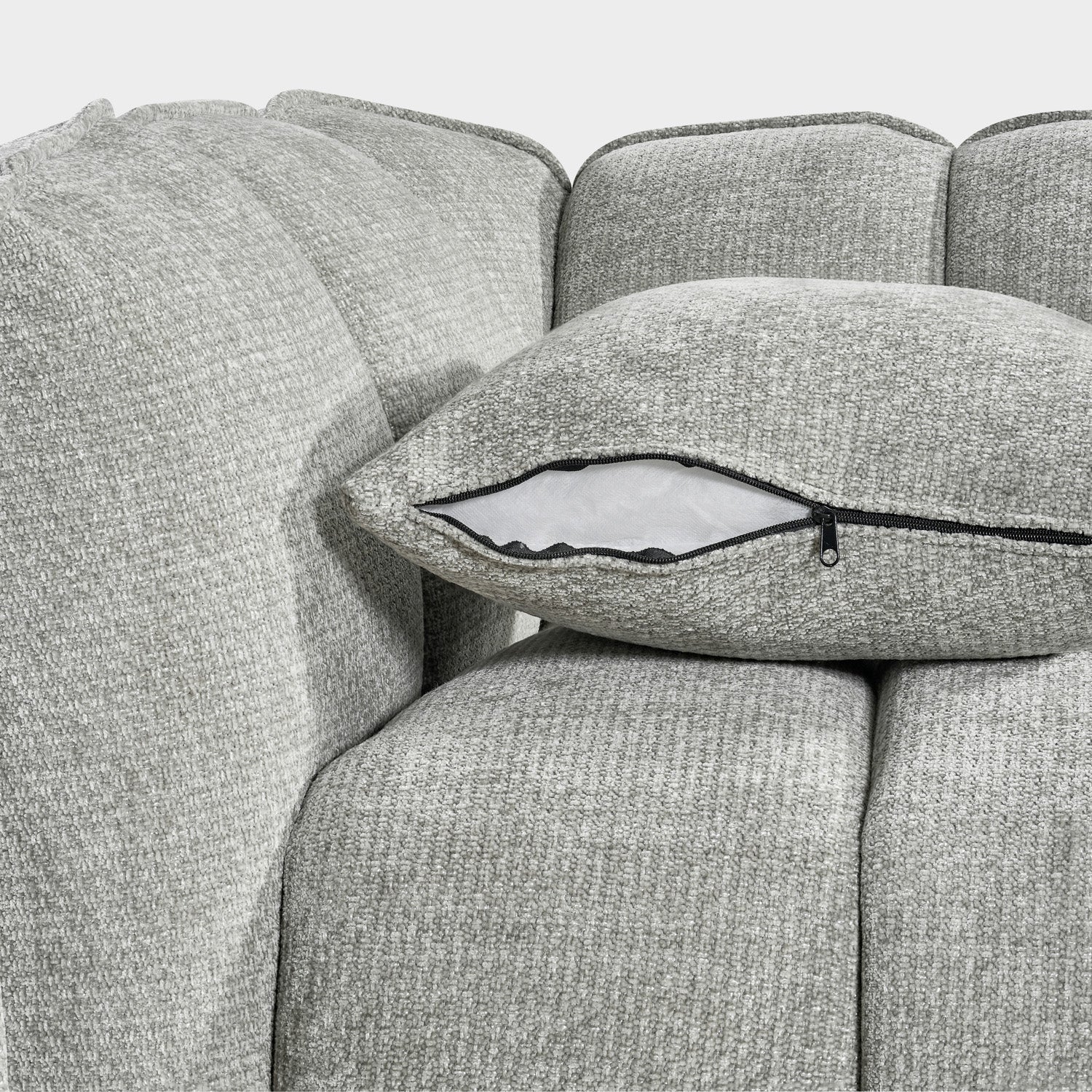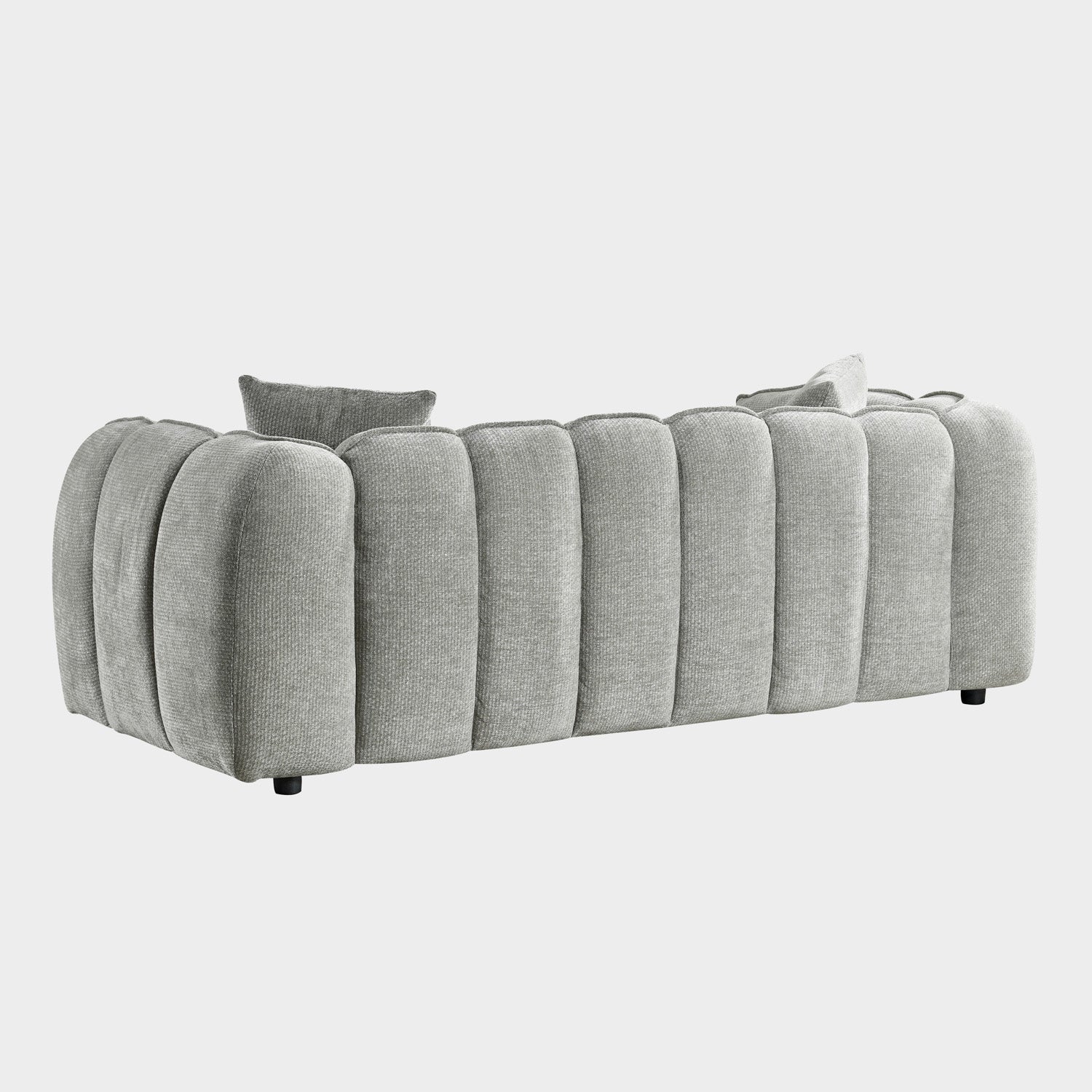 Elevate your living space with the Venice Grey 3 Seater Sofa—a statement of contemporary comfort and understated elegance. Upholstered in a soft, textured grey fabric, this sofa features a distinctive channeled design that adds both visual interest and plush support. The generously padded frame and deep seating ensure an inviting lounge experience, perfect for relaxing or entertaining.